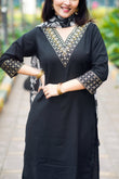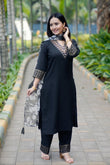 Black Mirror Work Kurta Set with Floral Organza Dupatta