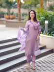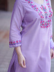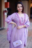 Step into grace with this soft lavender cotton suit, blooming with intricate embroidery and floral elegance. The flowy dupatta and feminine silhouette make it a perfect pick for brunches, daytime functions, or effortless festive wear.