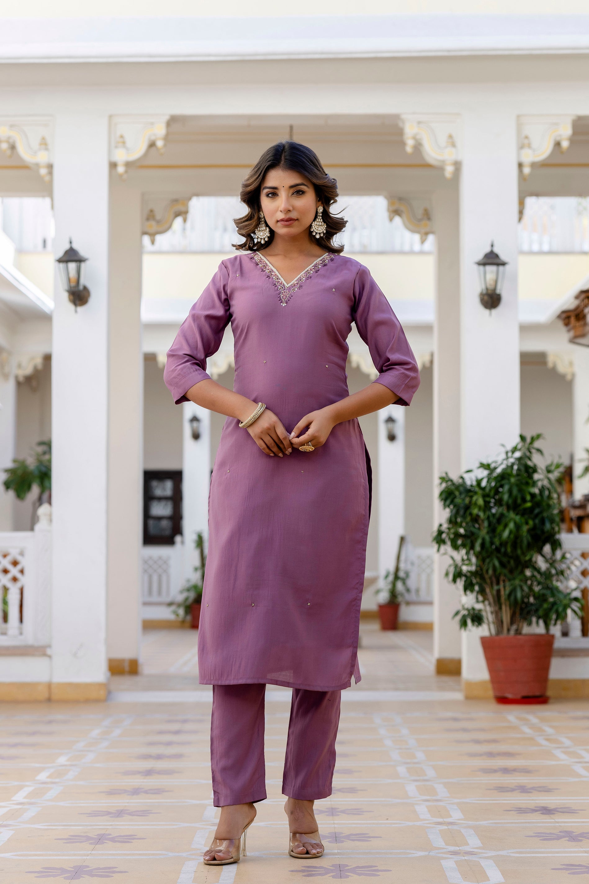๐ Straight-cut kurta with subtle embroidery on the neckline